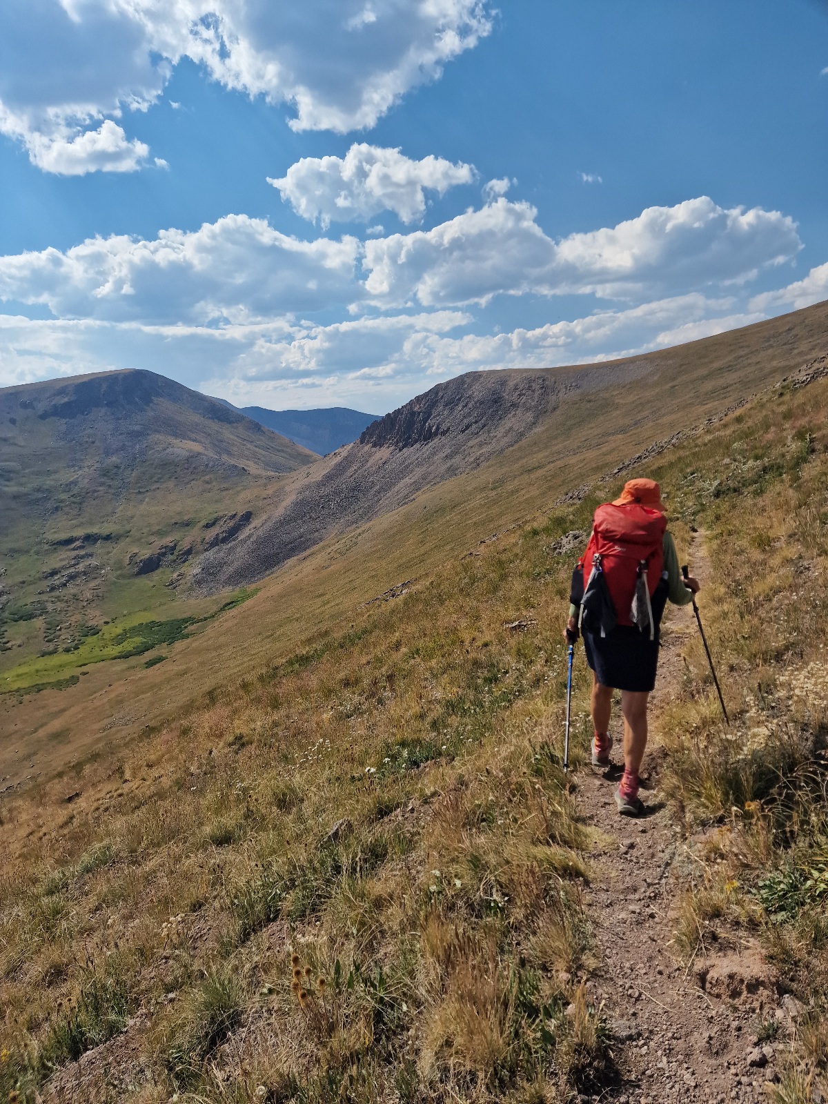 The Colorado Trail, Day 28. Tuesday, August 26, 2025. We tented at 3,843 meters (12,608 feet), and it was clear during the first part of the night before it clouded over. A few drops of rain actually fell during the night. The cloud cover meant that the morning wasn’t as cold as we had feared …