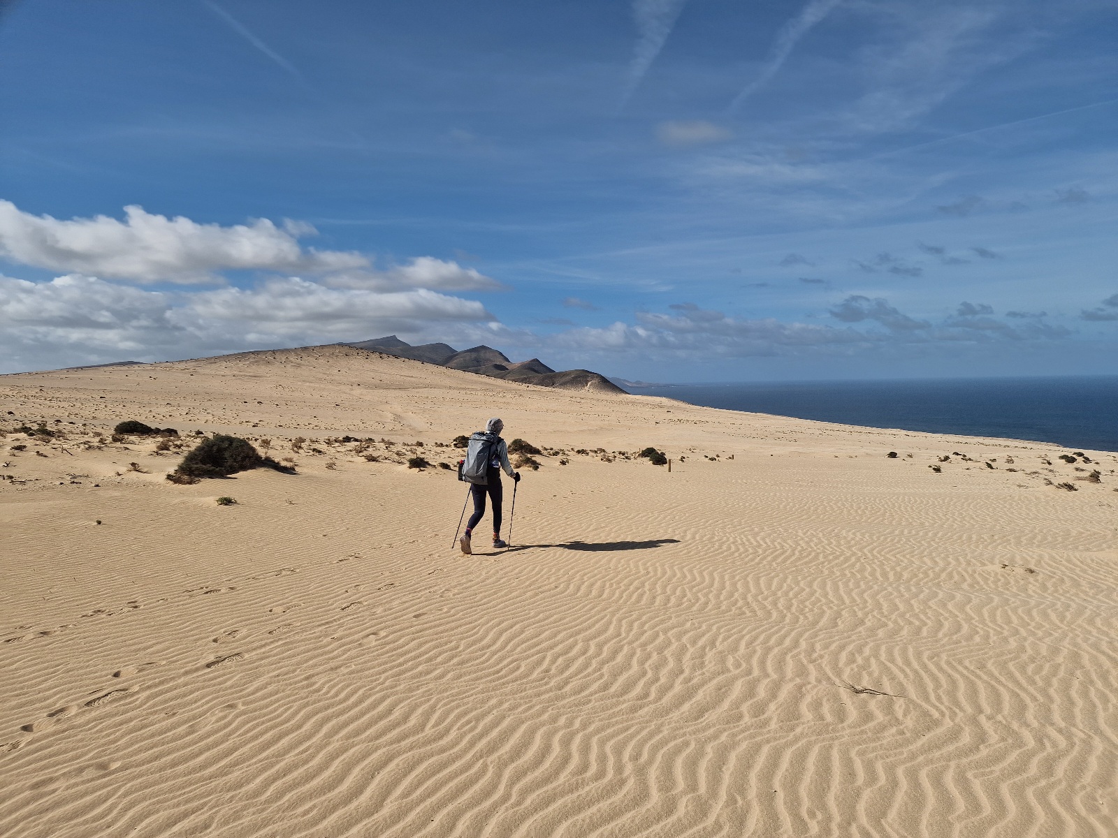 GR131 Canary Islands, Day 5: Saturday, Jan 17, 2026Yesterday afternoon, we took the ferry from Lanzarote to Corralejo on Fuerteventura. Our plan is to spend six days crossing this island. The small towns we pass through have very limited lodging, so we are relying on tenting—even though it’s technically not permitted. The trick is to …
