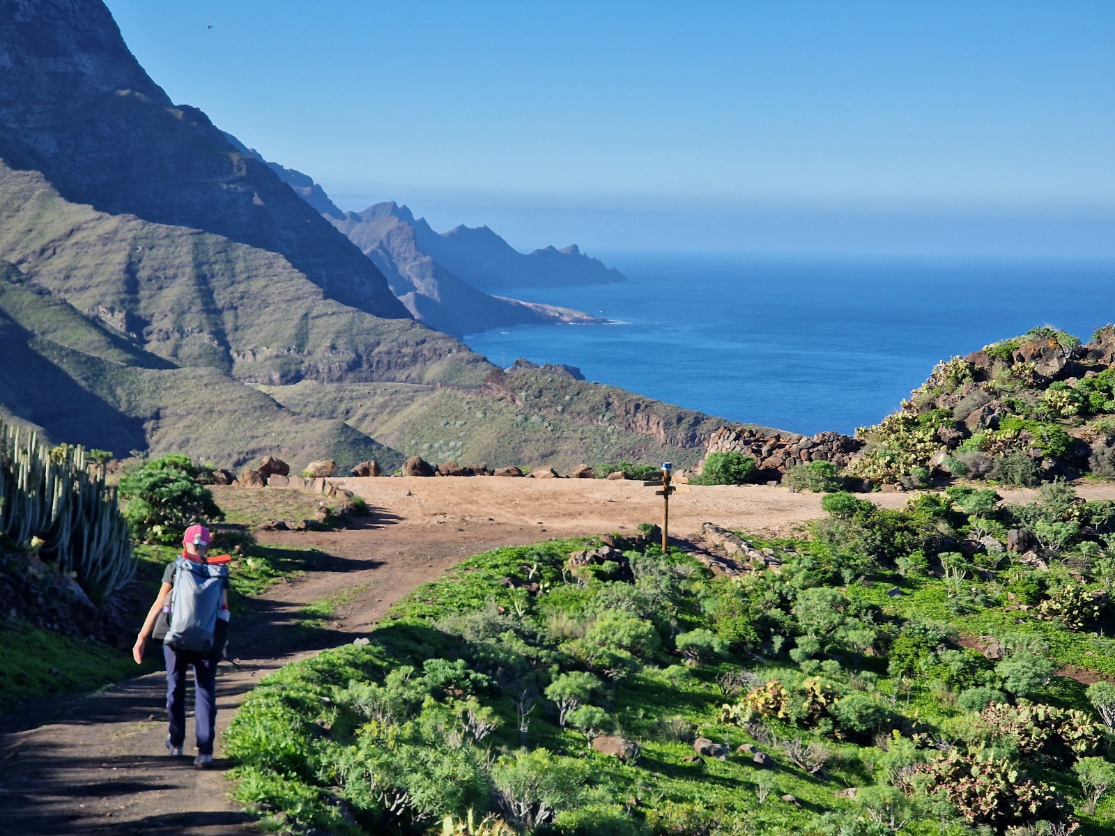 GR131 Canary Islands, Day 8: Tuesday, Jan 20, 2026The most beautiful day of the trip so far!We camped in our tent near a shelter just outside of Pájara. The night was clear and starry. The weather forecast held true: less wind and no rain. Inger woke up around 7:00 AM. We ate breakfast at dawn, …